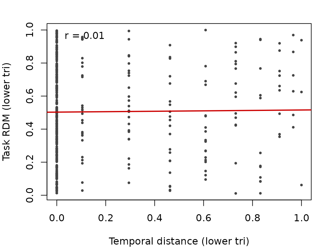 xlab="Temporal distance (lower tri)", ylab="Task RDM (lower tri)")