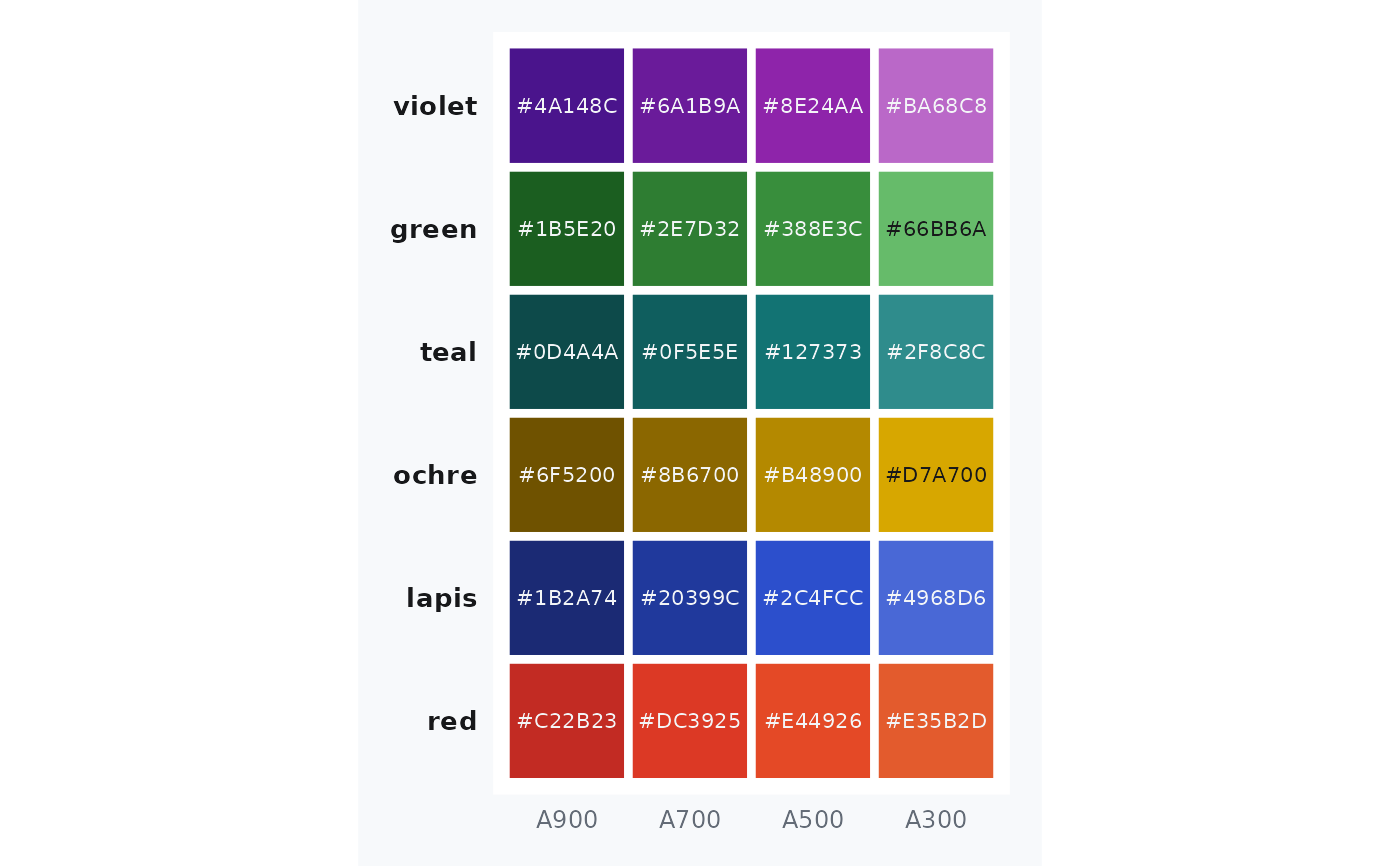 families = c("red", "lapis", "ochre", "teal", "green", "violet"),