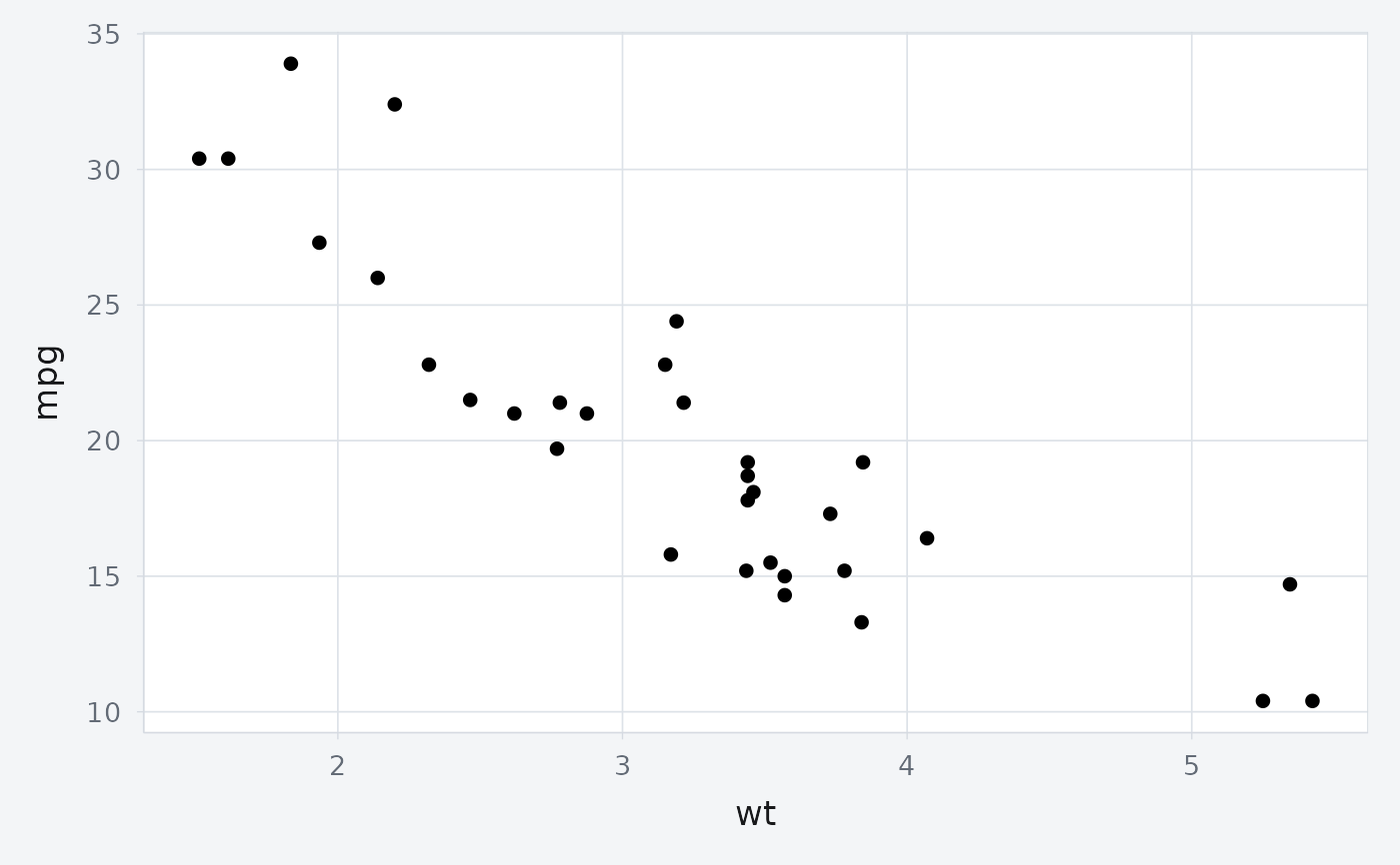 ggplot2::ggplot(mtcars, ggplot2::aes(wt, mpg)) +