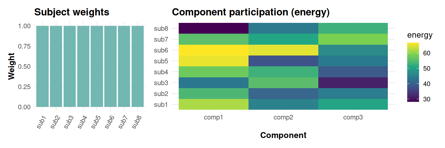 The left panel simply visualises the subject-level weights that were