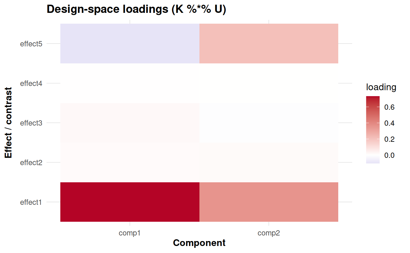 Effect-space loadings heatmap (K %*% U)
