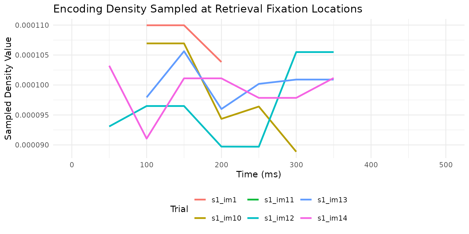 density at the retrieval fixation locations at each time point, creating