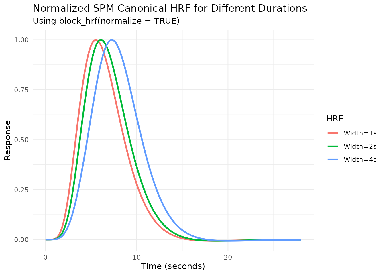 # Compare HRFs using plot_hrfs() - normalize = TRUE scales to peak at 1.0