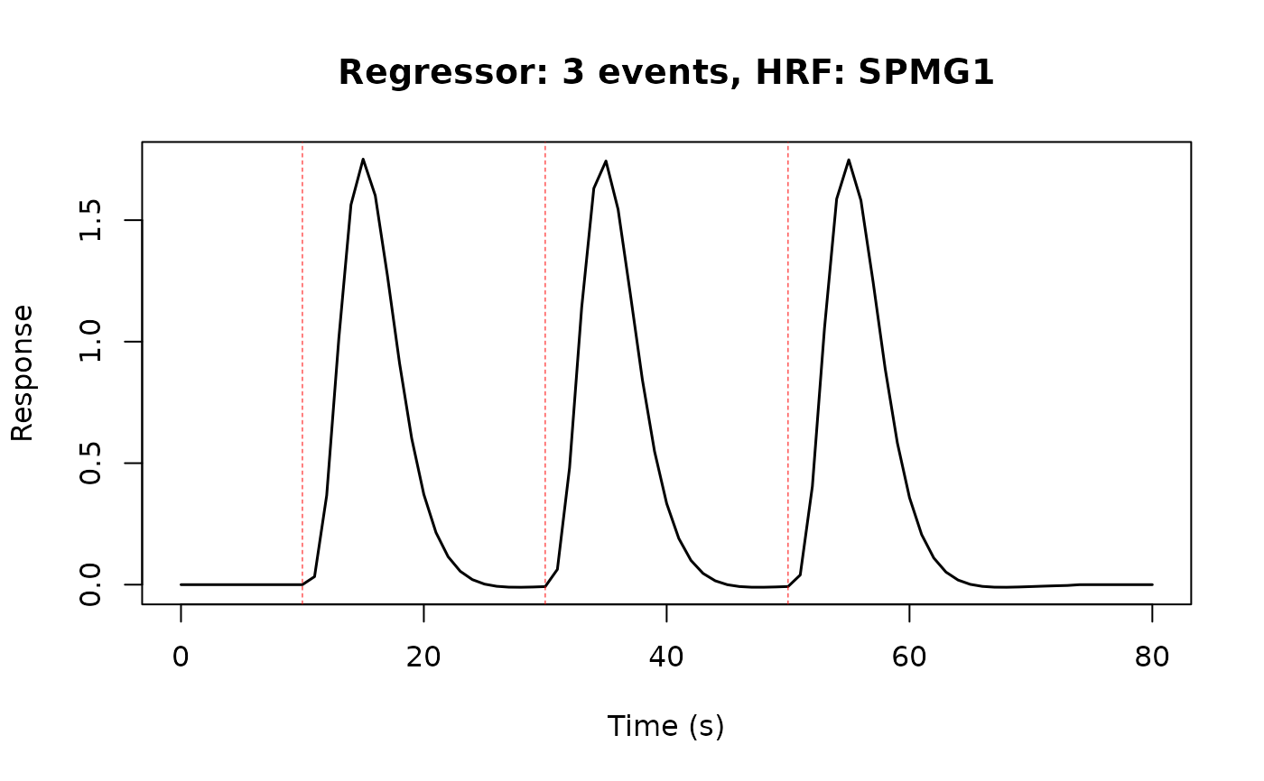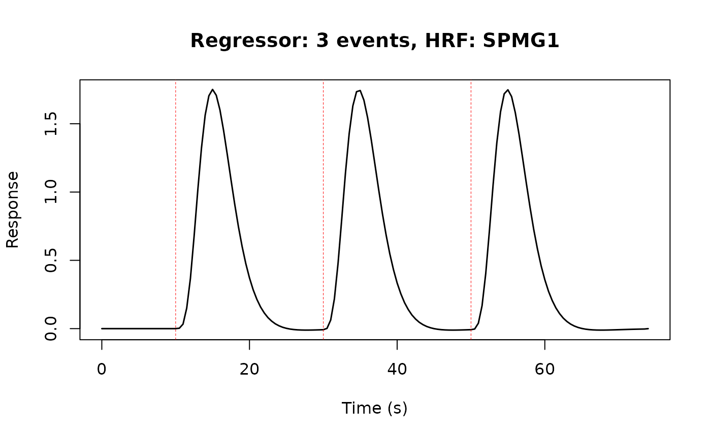 Creates a visualization of a regressor object showing the predicted BOLD response over time. Optionally displays event onsets as vertical lines.