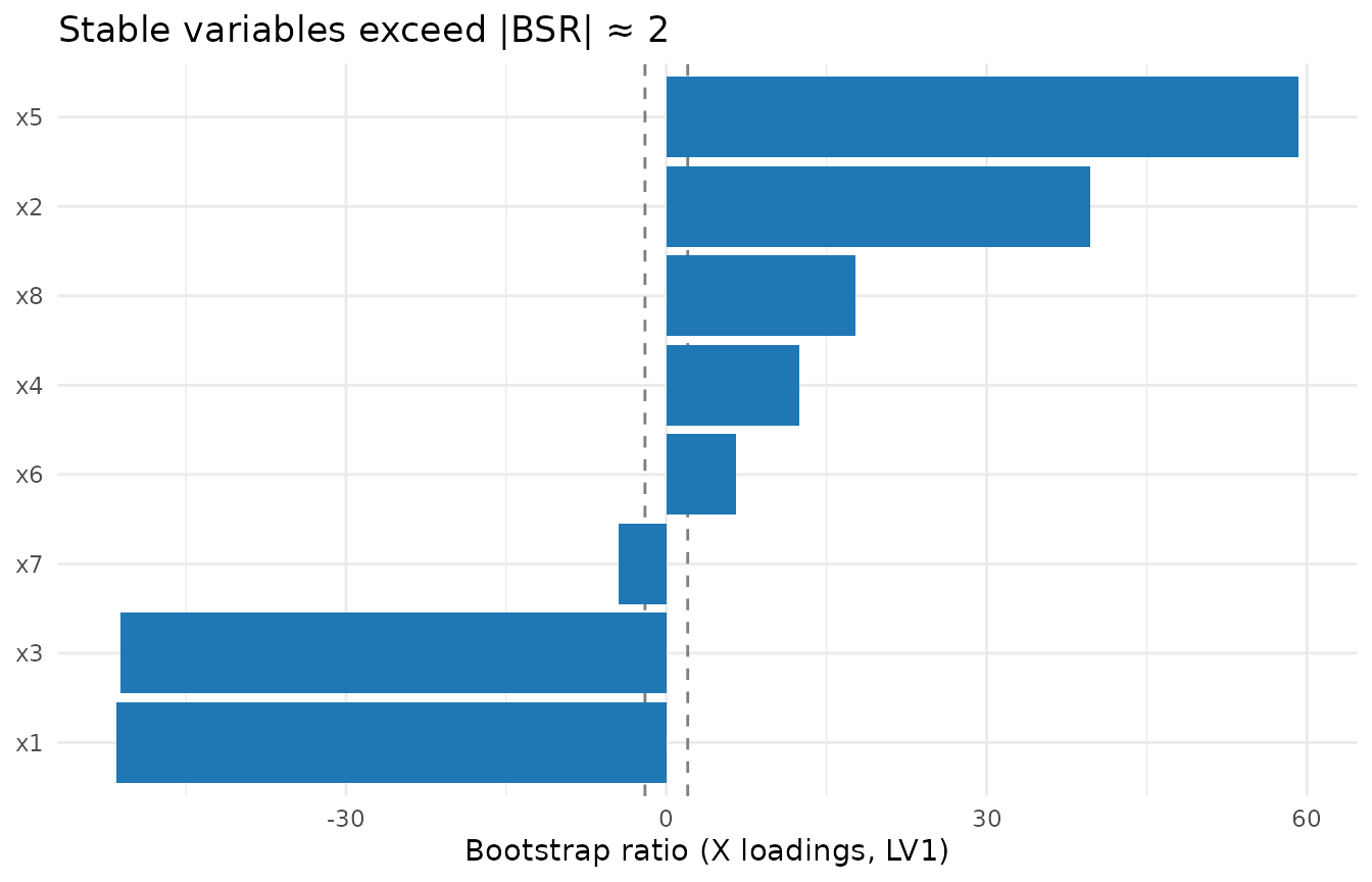 #> Sequential n_significant (alpha = 0.05): 26. Bootstrap ratios for stable loadings