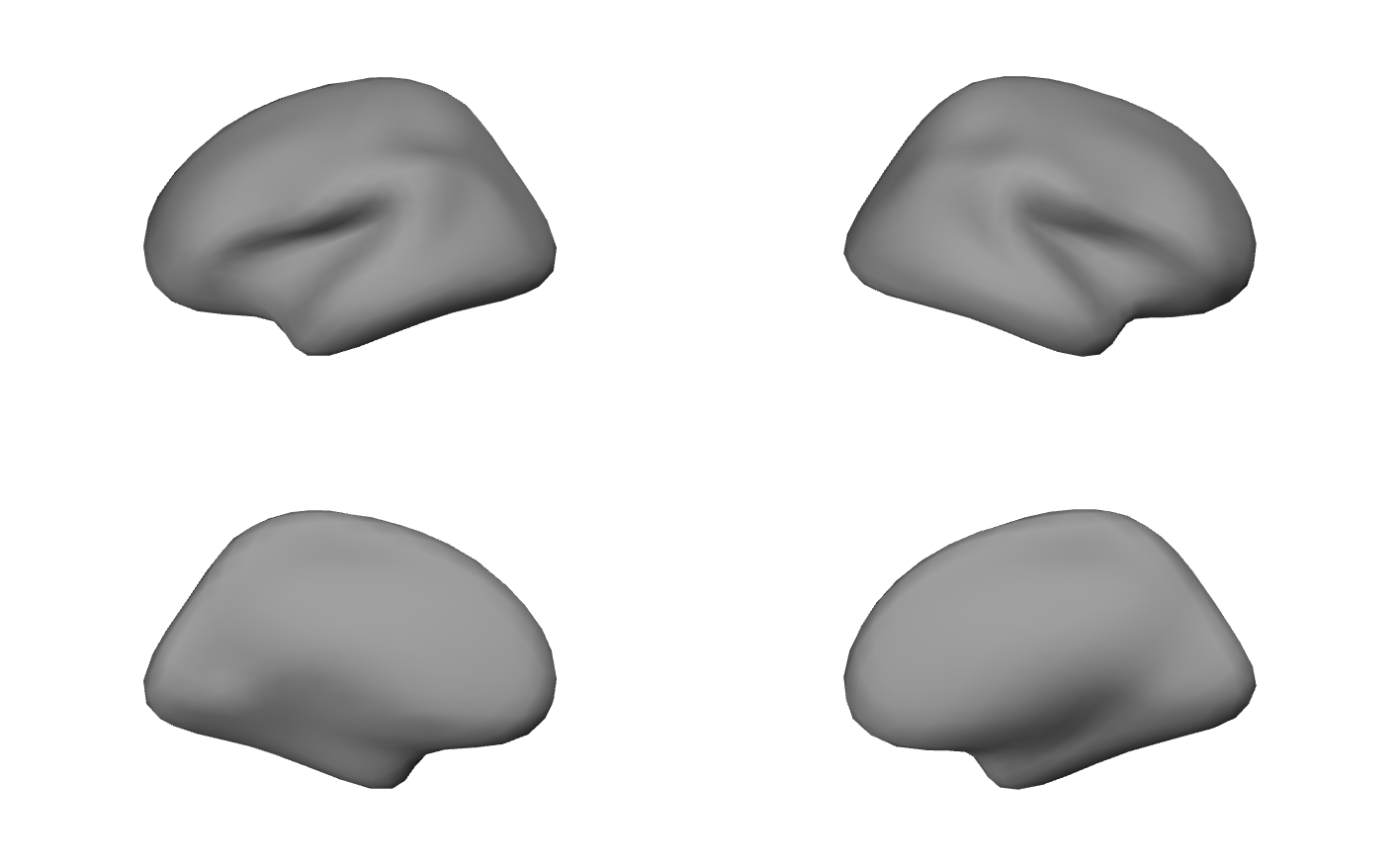 show_surface_plot(fs$lh, fs$rh, views = c("lateral", "medial"))
